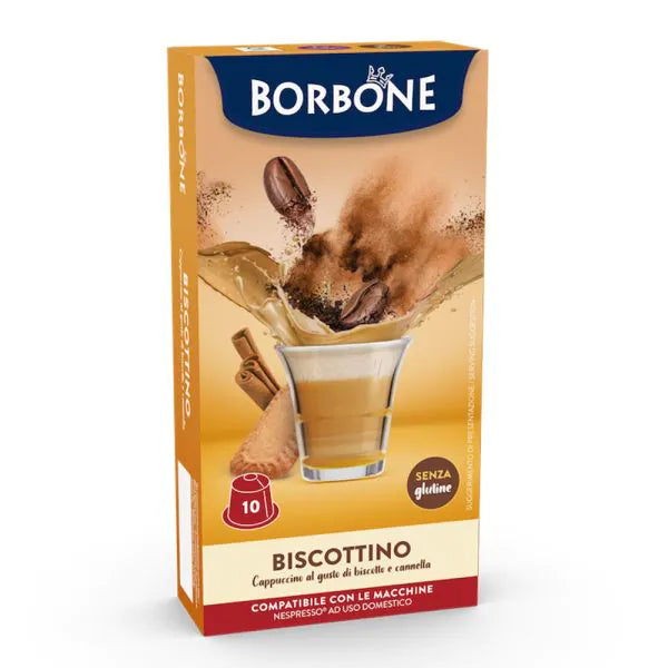Rendi speciale la tua colazione o la tua pausa con le capsule Borbone Biscottino: il cappuccino diventa ancora più goloso con il gusto biscotto, per un piccolo piacere tutto da assaporare.