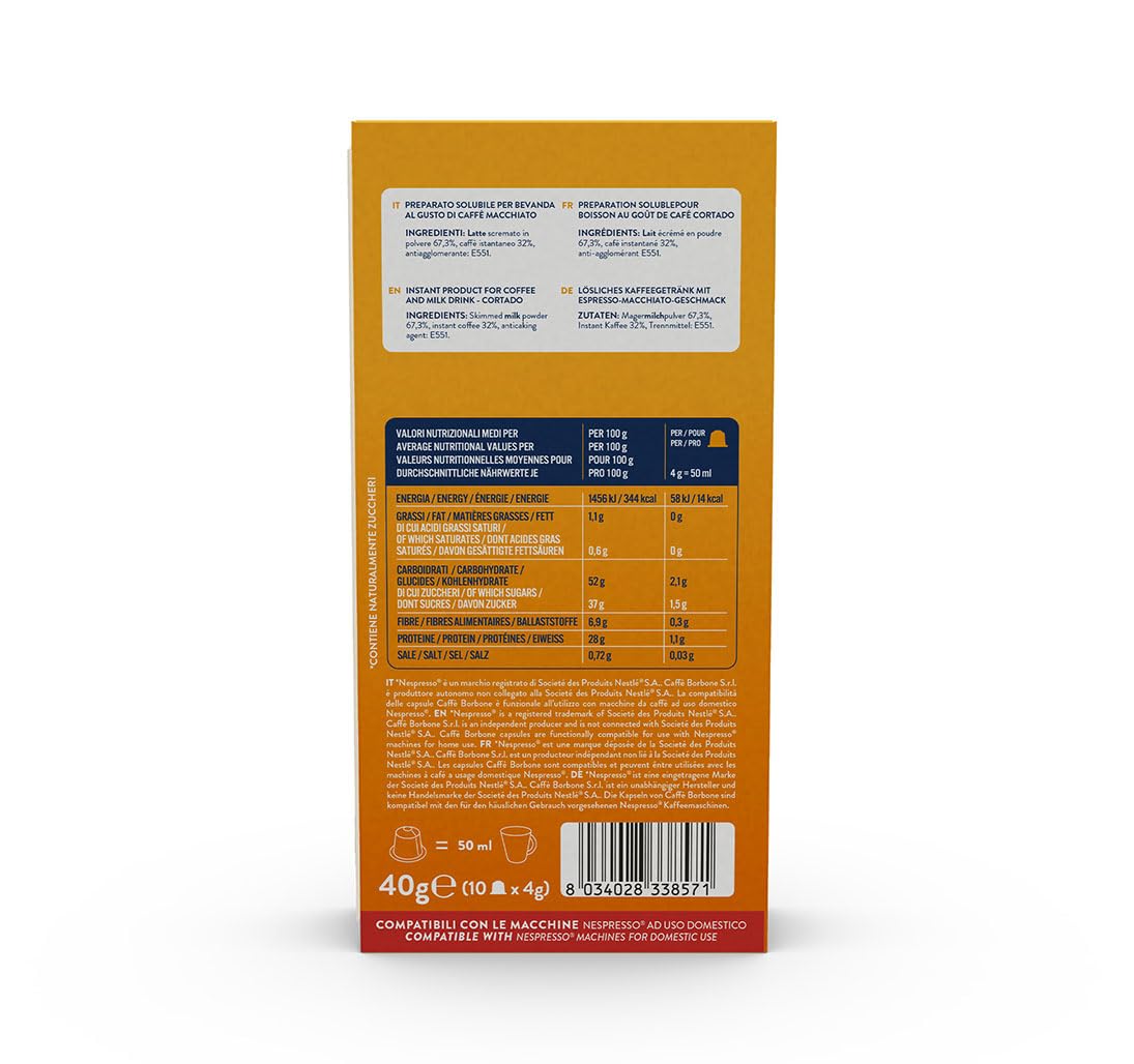10 Capsule Borbone Compatibili con macchine ad uso domestico Nespresso per bevanda solubile CORTADO Al Gusto di Caffè Macchiato.