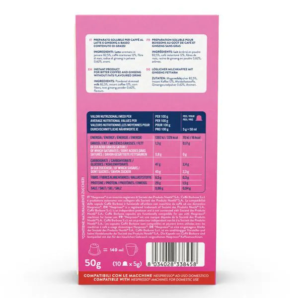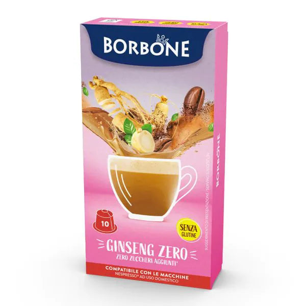 Ginseng Zero Borbone capsule compatibili Nespresso®, caffè al Ginseng zero zuccheri aggiunti.