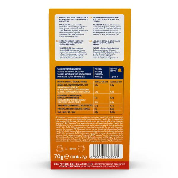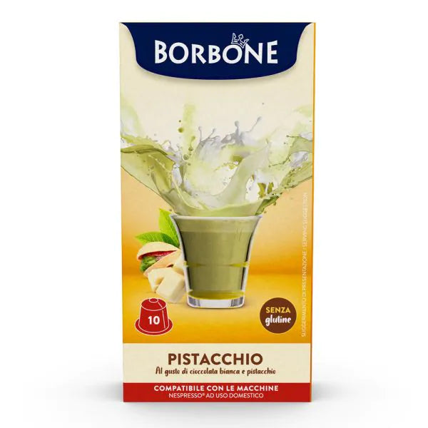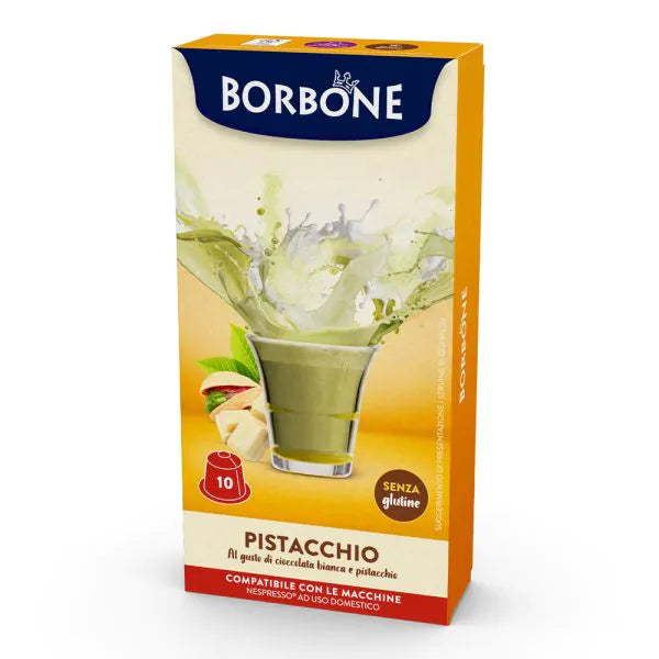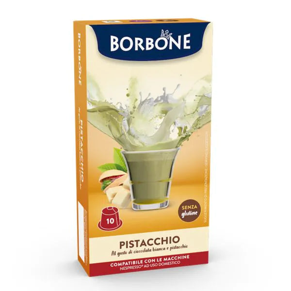 10 Capsule Borbone per bevanda Solubile Gusto Cioccolata Bianca e Pistacchio. Capsule compatibili con macchine Nespresso.