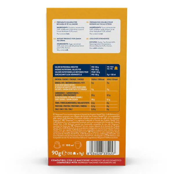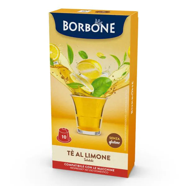 Scopri le 10 Capsule Borbone compatibili con macchine Nespresso, dedicate al Tè al Limone. Ogni capsula racchiude un infuso aromatico e fresco, ideale per chi cerca una bevanda leggera e dissetante. Facili da usare e compatibili con tutti i sistemi Nespresso Original, garantiscono una preparazione veloce e pratica senza rinunciare a un gusto autentico. Perfette per le pause relax durante la giornata, offrono un’esperienza di tè al limone di alta qualità direttamente a casa tua.