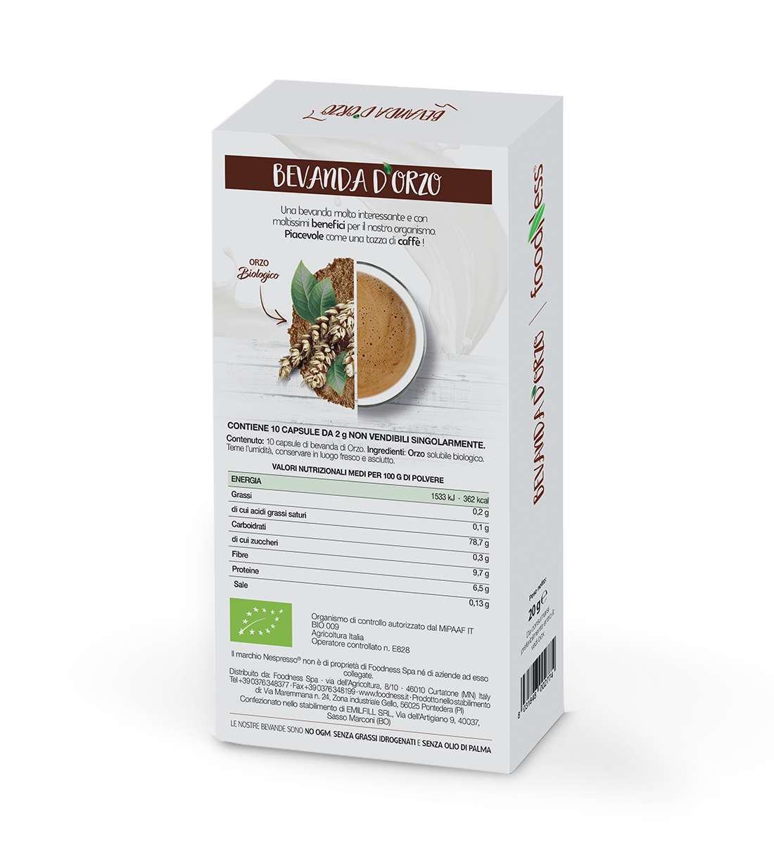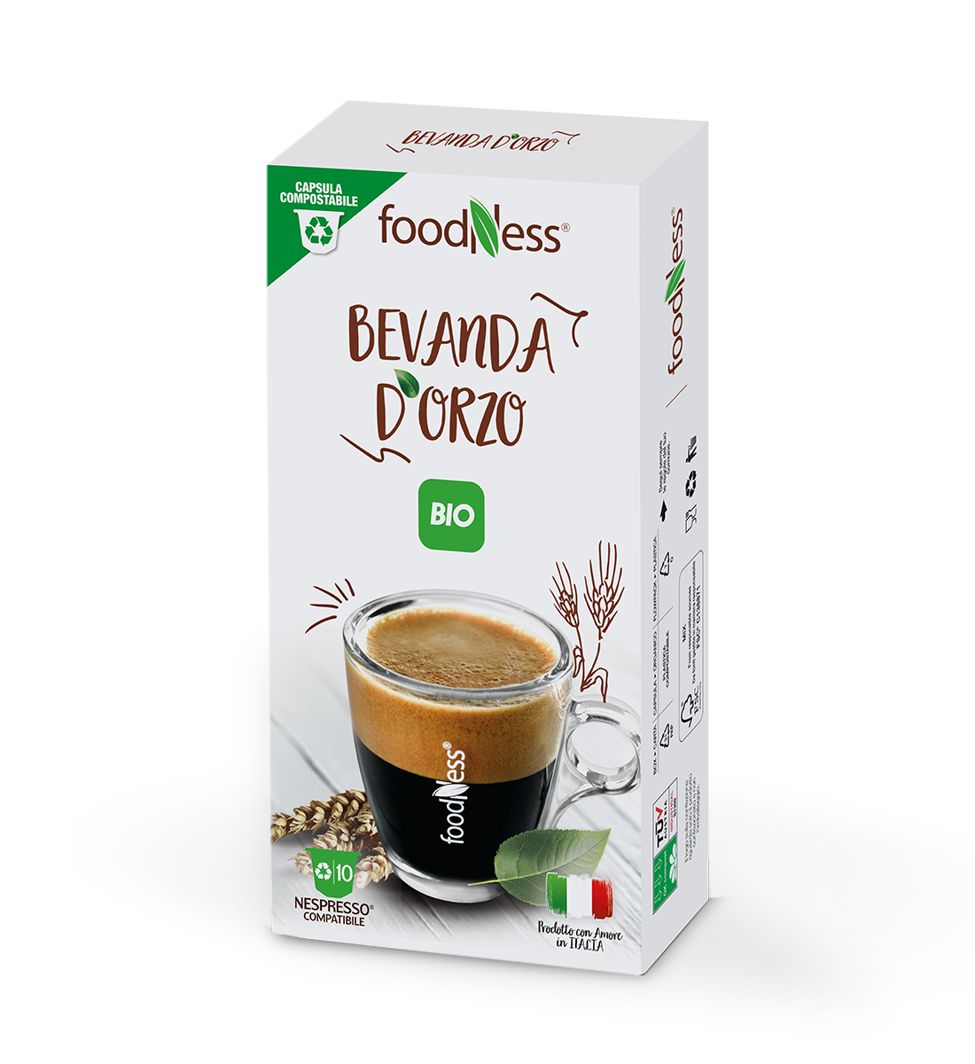Prova le capsule FoodNess Orzo compatibili con macchine Nespresso per una bevanda calda dal sapore autentico e delicato. Perfette per chi cerca un’alternativa naturale al caffè, senza rinunciare a gusto e praticità.