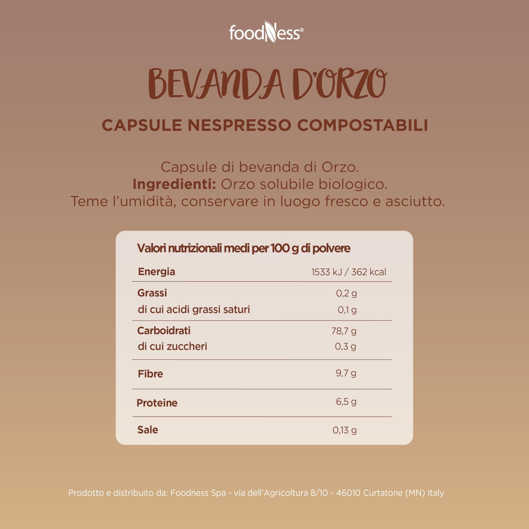 Ordina subito su Cialdein.com e porta a casa il piacere genuino delle capsule Orzo FoodNess per Nespresso!
