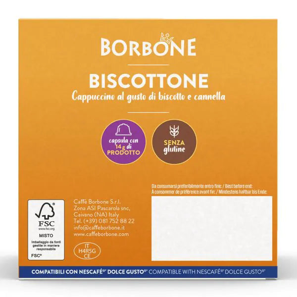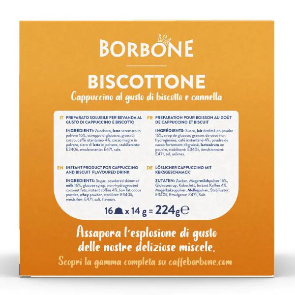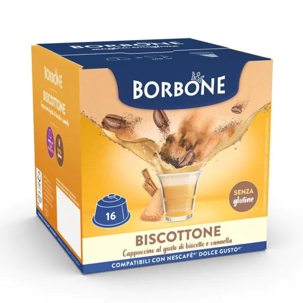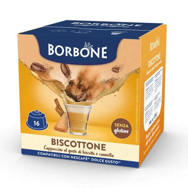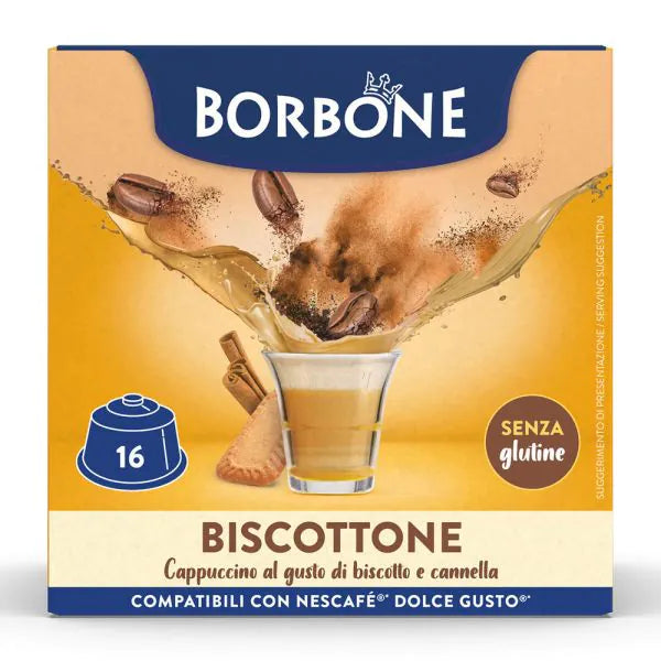BISCOTTONE - Cappuccino al gusto di Biscotto e Cannella in capsule Borbone compatibili con Nescafé Dolce Gusto. Assapora un'esplosione di gusto!