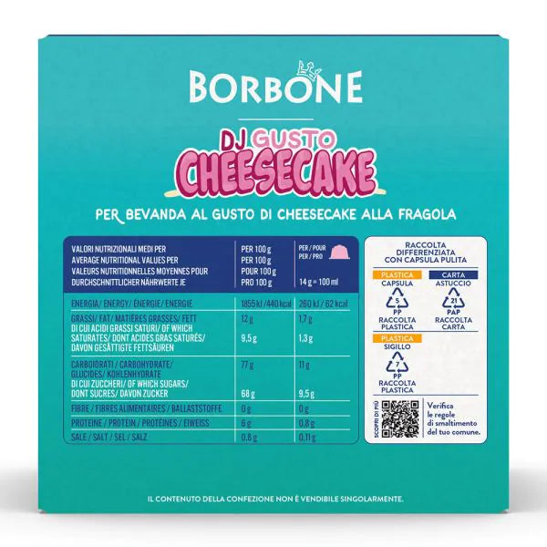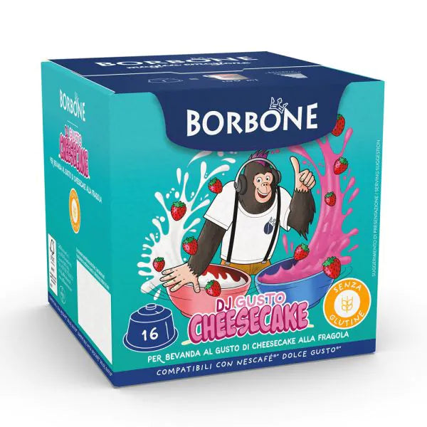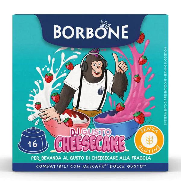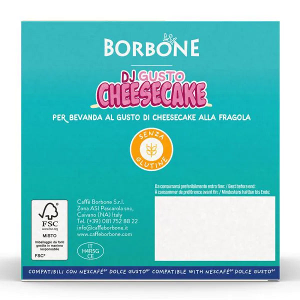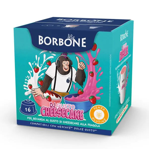 Dj Gusto Cheesecake per bevanda al gusto di Cheesecake alla Fragola in capsule Borbone compatibili con macchine Nescafé Dolce Gusto. Assapora un'esplosione di gusto!