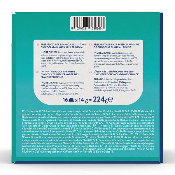 *Nescafé® *Dolce Gusto® sono marchi registrati di Societè des Produits Nestlè® S.A. La compatibilità delle capsule è funzionale all'utilizzo con macchine da caffè ad uso domestico Nescafé® Dolce Gusto®.