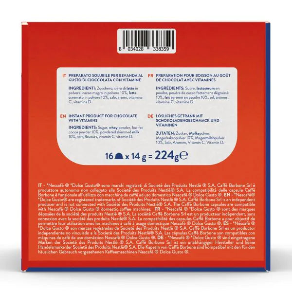 *Nescafé® *Dolce Gusto® sono marchi registrati di Societè des Produits Nestlè® S.A. La compatibilità delle capsule è funzionale all'utilizzo con macchine da caffè ad uso domestico Nescafé® Dolce Gusto®.