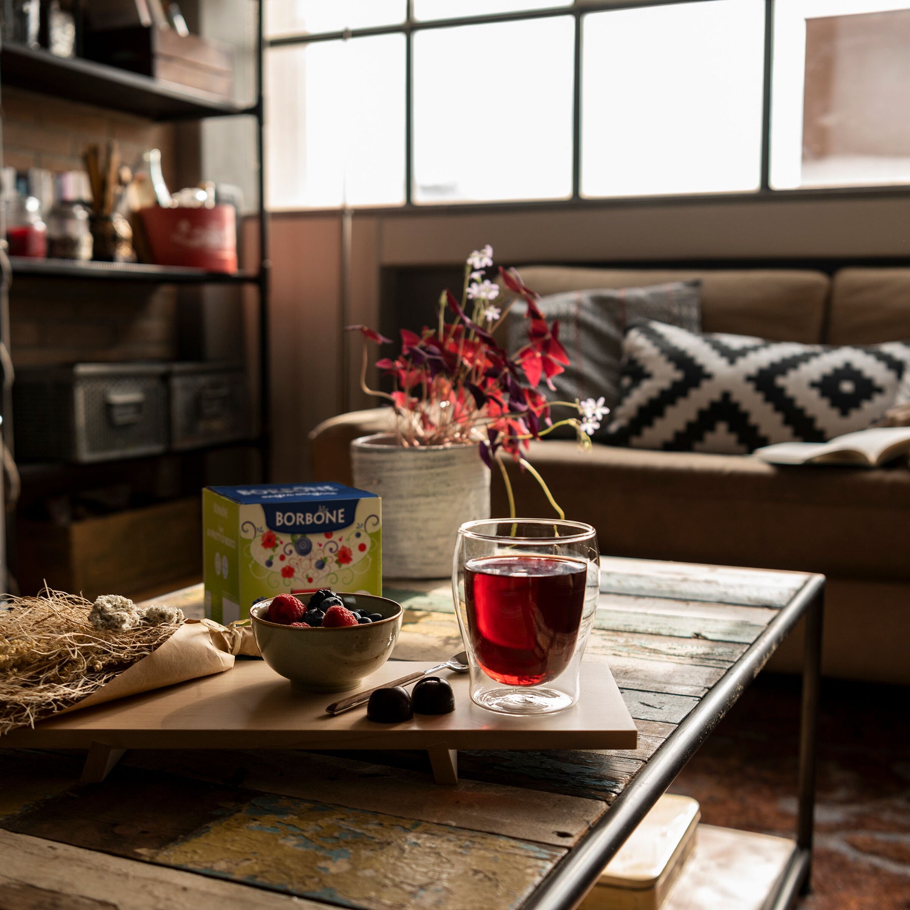 Fiori di ibisco, rosa canina, scorze di arancia e limone, bacche di sambuco e mirtilli: prova il delicato bouquet di sapori dell’infuso ai frutti di bosco Caffè Borbone e concediti una pausa di delizioso relax.