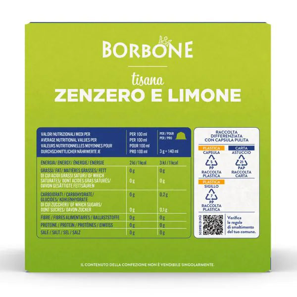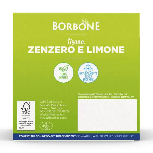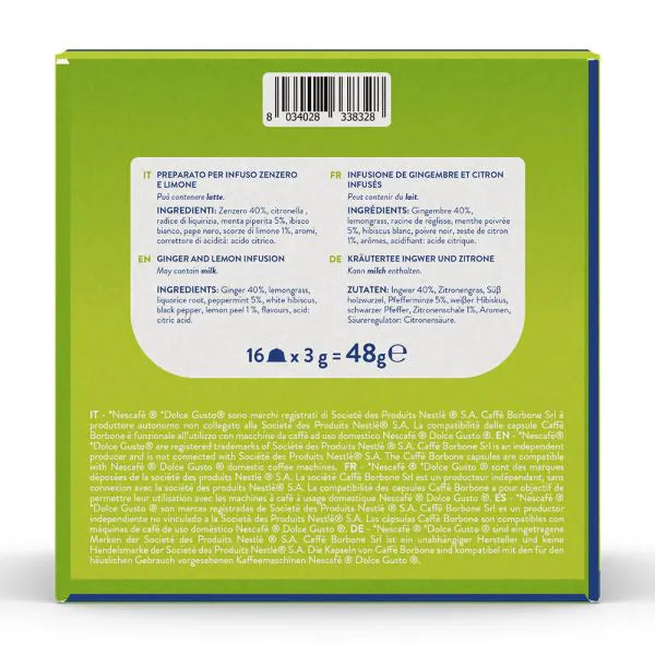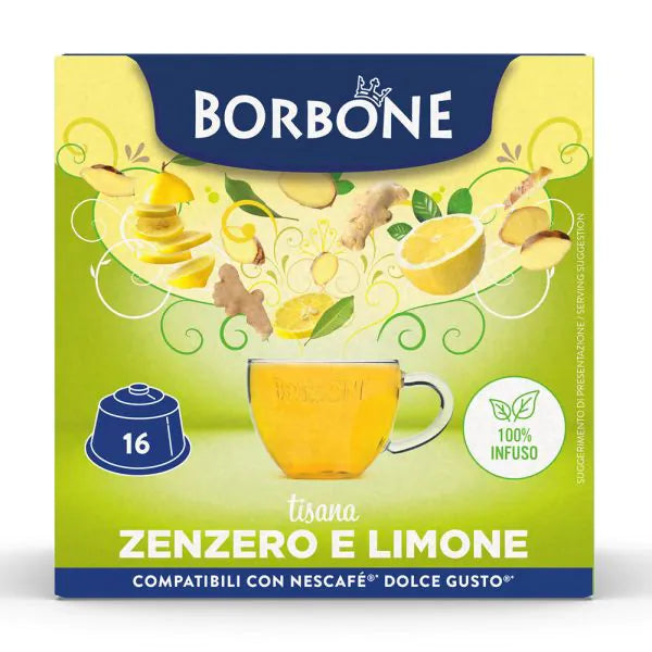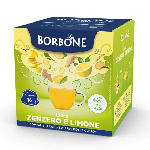 Tisana Borbone Zenzero e Limone. Preparato per infuso zenzero e Limone per macchine Nescafé Dolce Gusto.