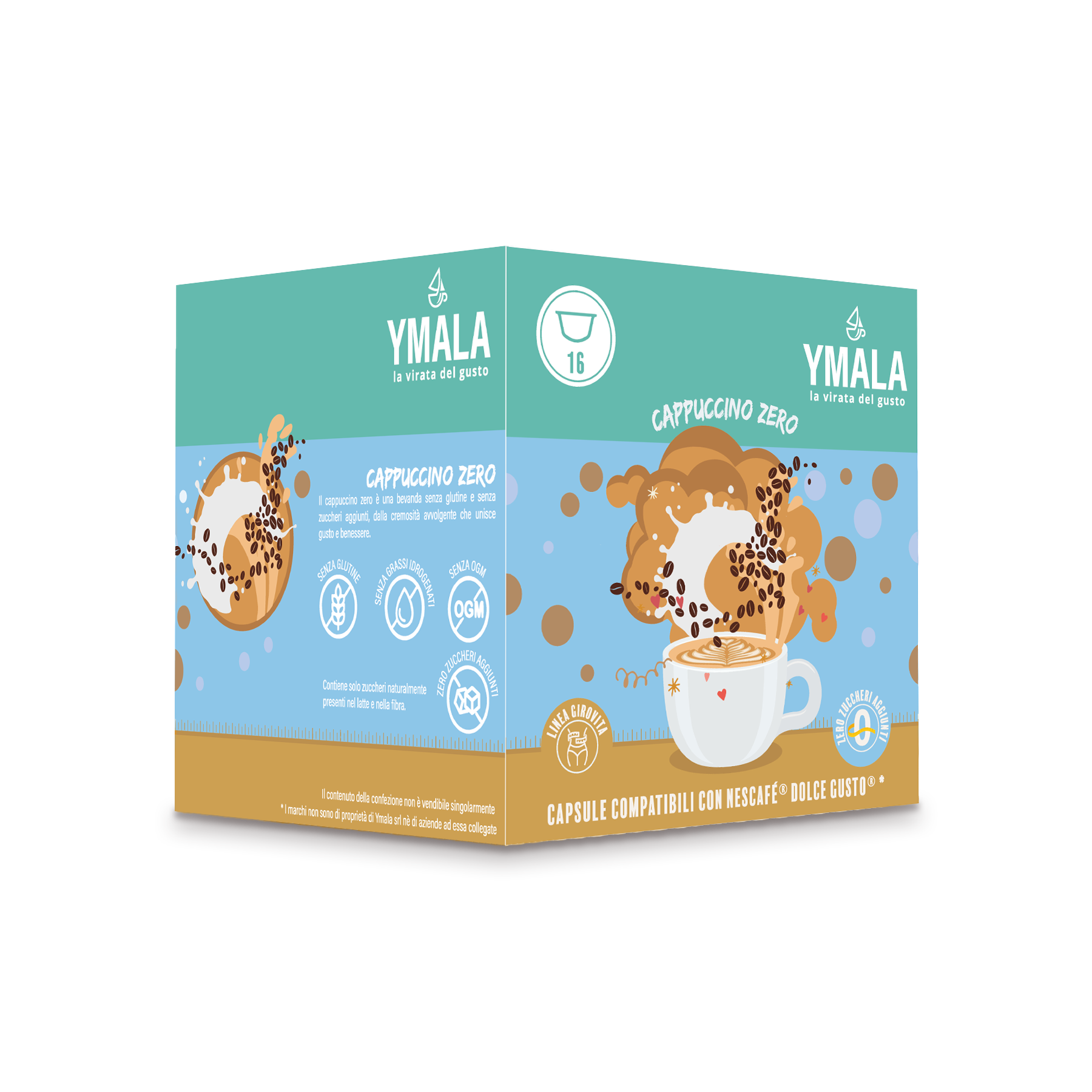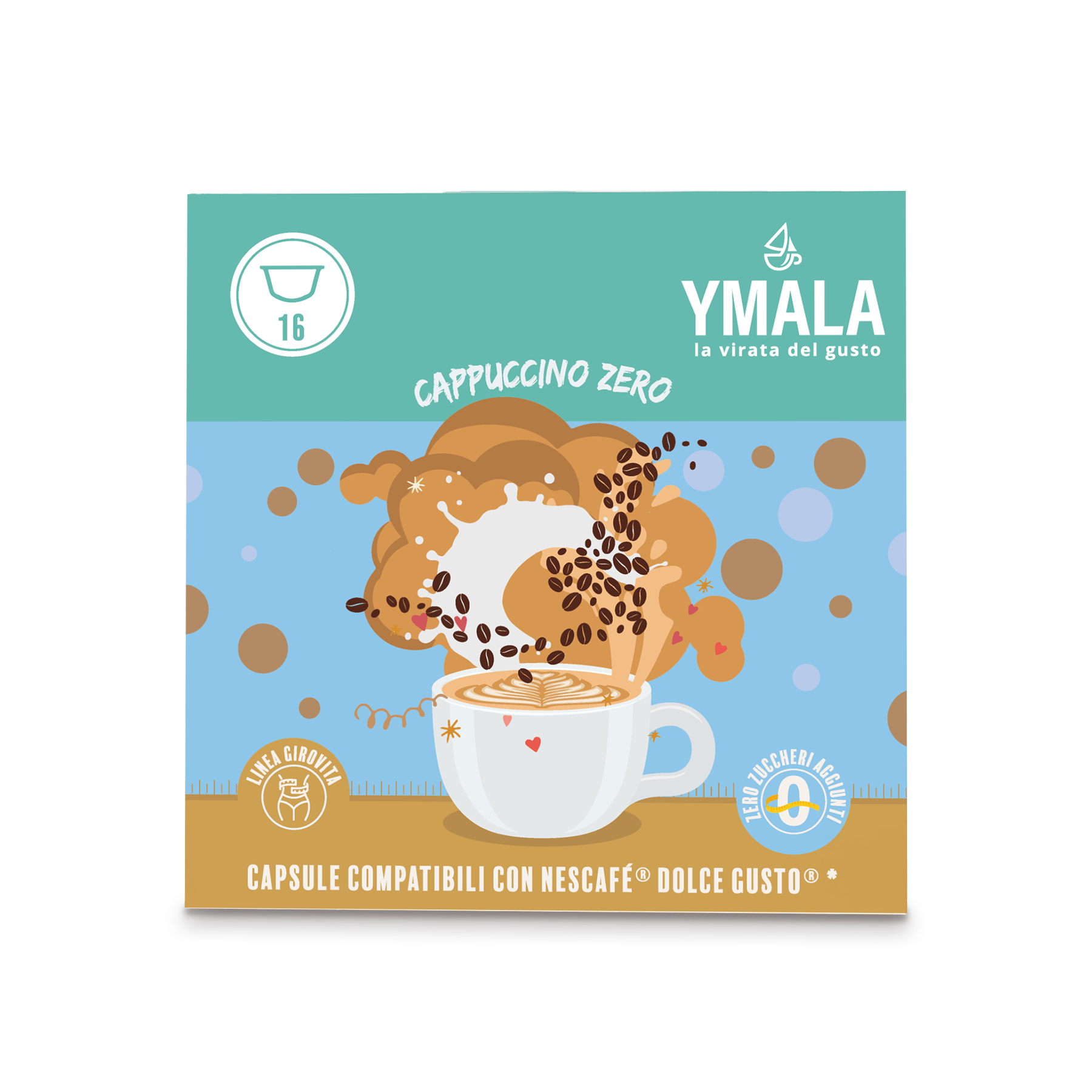 Goditi un cappuccino leggero con le cialde Ymala Cappuccino Zero, compatibili con le macchine Dolce Gusto®. Queste capsule offrono un sapore ricco e cremoso, ma senza zuccheri aggiunti, senza glutine, ideali per chi cerca una pausa golosa e leggera.