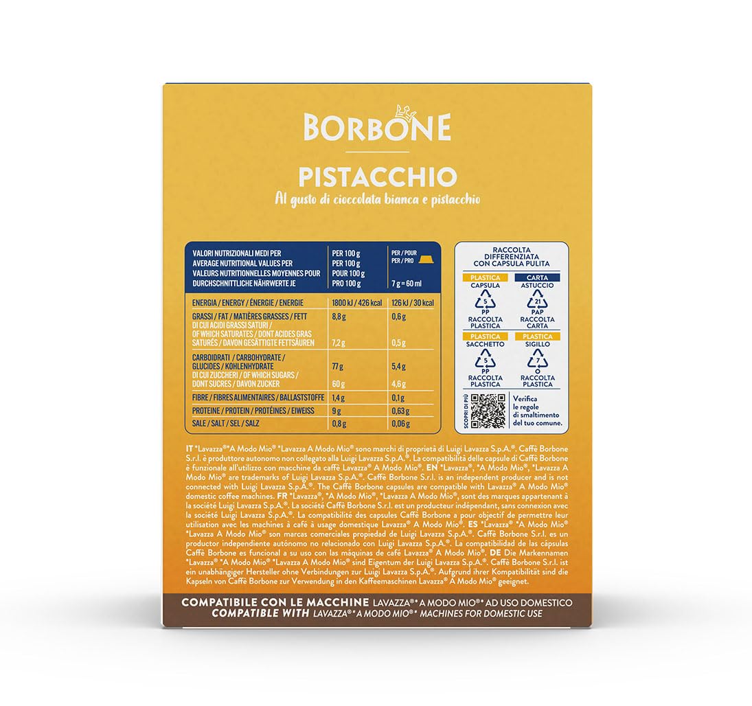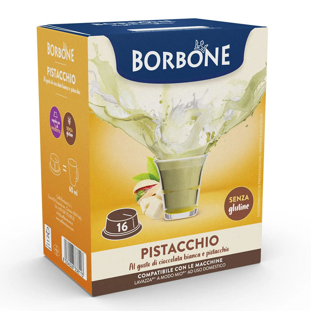 Borbone cioccolata bianca e PISTACCHIO - 16 capsule compatibili Lavazza A Modo Mio