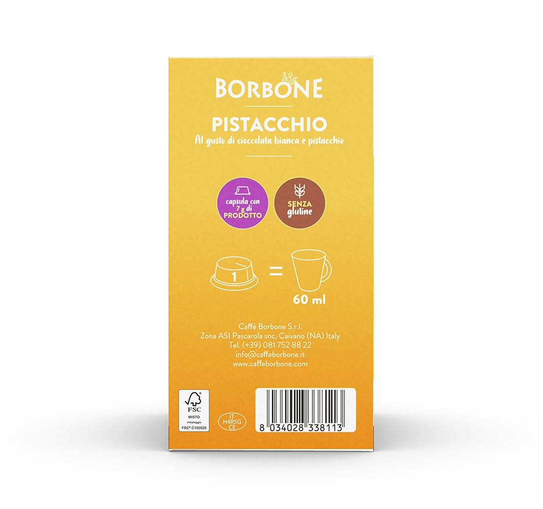 Regalati una piccola coccola per il palato con le capsule Caffè Borbone Pistacchio: tutto il gusto della cioccolata bianca con un pizzico di inconfondibile pistacchio per un mix inedito tutto da assaporare.