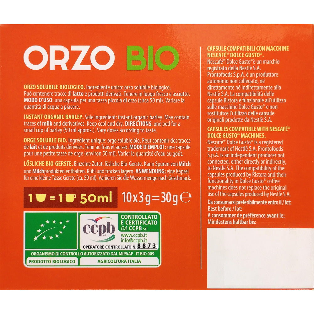 Scopri la nuova esperienza di orzo biologico con le capsule Ristora, studiate appositamente per Nescafè Dolce Gusto. Goditi ogni giorno una bevanda calda, dal sapore autentico e naturale, senza compromessi sulla qualità.