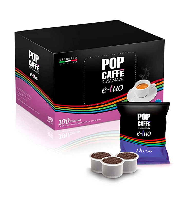 Scopri il carattere deciso e avvolgente della miscela Pop Caffè E-Tuo Deciso, pensata per chi ama un espresso forte e corposo. Le 100 capsule sono compatibili con le macchine da caffè Lui, garantendo un risultato sempre perfetto in tazza.