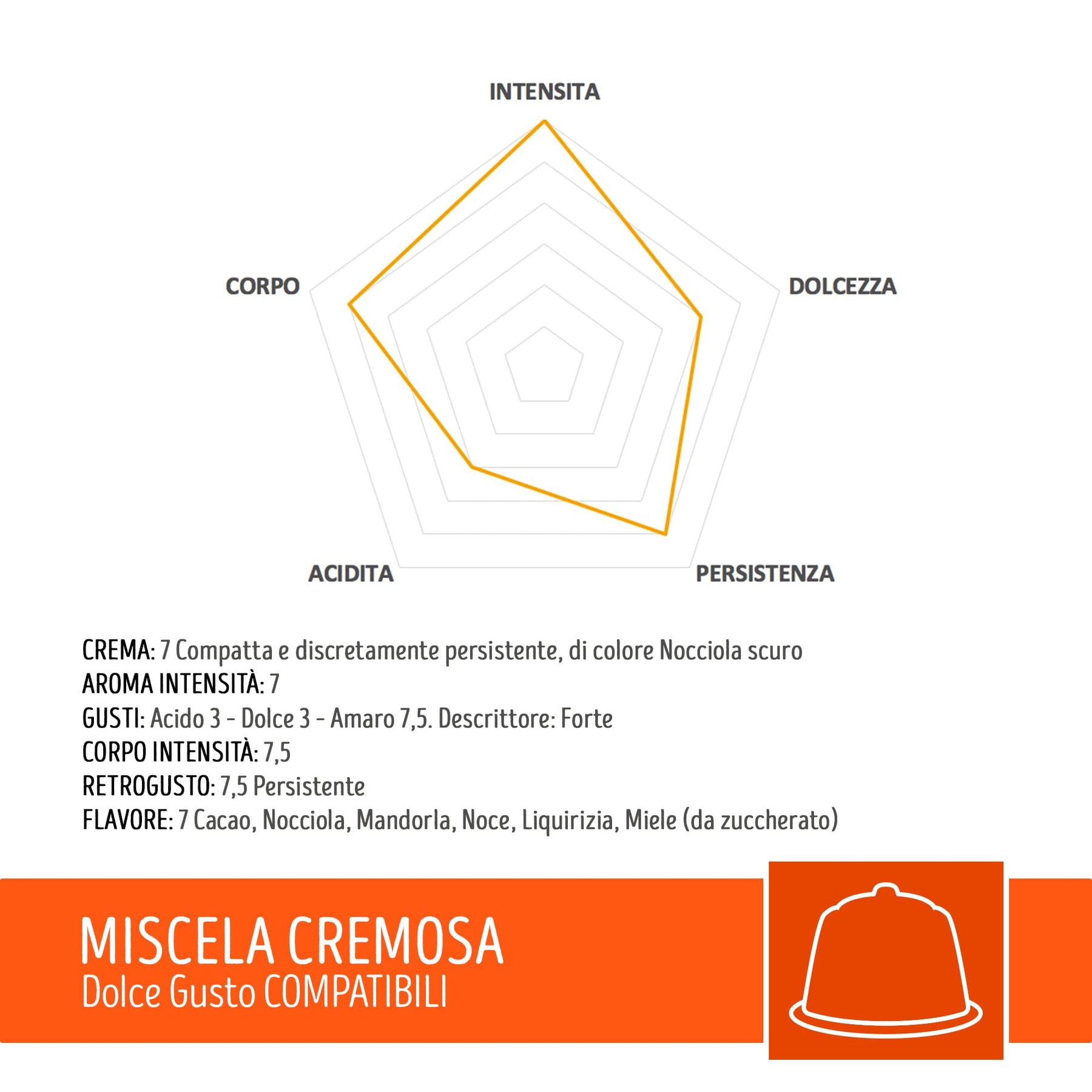 - Aroma: intenso e cremoso con note di tostatura delicata
