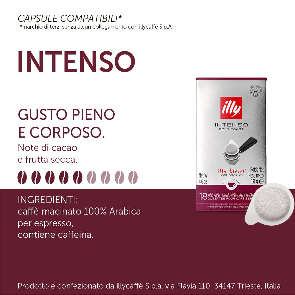 18 Cialde Illy 44mm Espresso Intenso tostatura scura