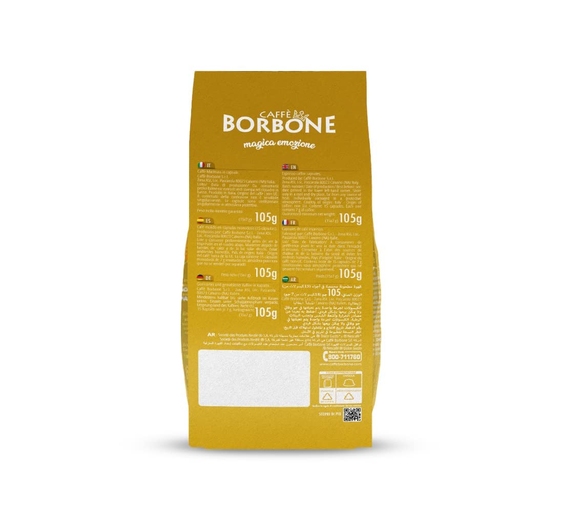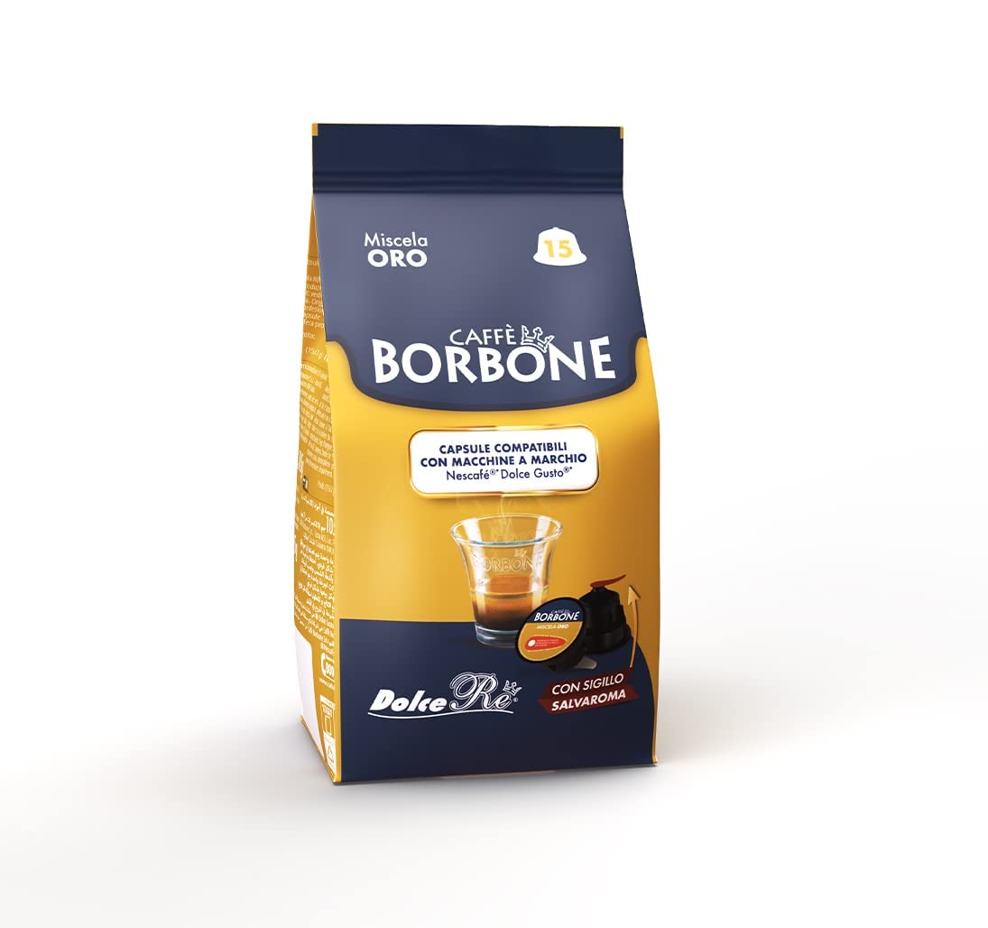 Scopri il sapore raffinato della Miscela Oro con le 15 capsule Borbone compatibili Nescafé Dolce Gusto. Questa miscela offre un caffè dal corpo pieno e dall’aroma ricco, ideale per gli amanti di un espresso dal carattere deciso. Facili da usare e perfette per ogni momento, queste capsule garantiscono un’esperienza di caffè di alta qualità.