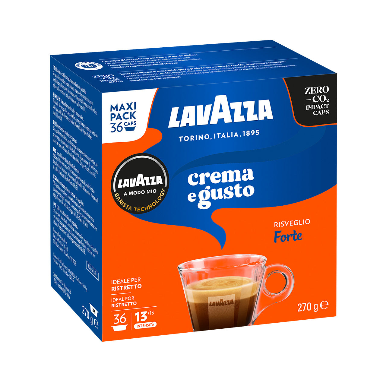 Concediti un espresso dal carattere unico con le capsule Lavazza Crema e Gusto Forte. Acquista ora la confezione da 36 capsule originali A Modo Mio e porta a casa tutta l’esperienza del vero caffè italiano.
