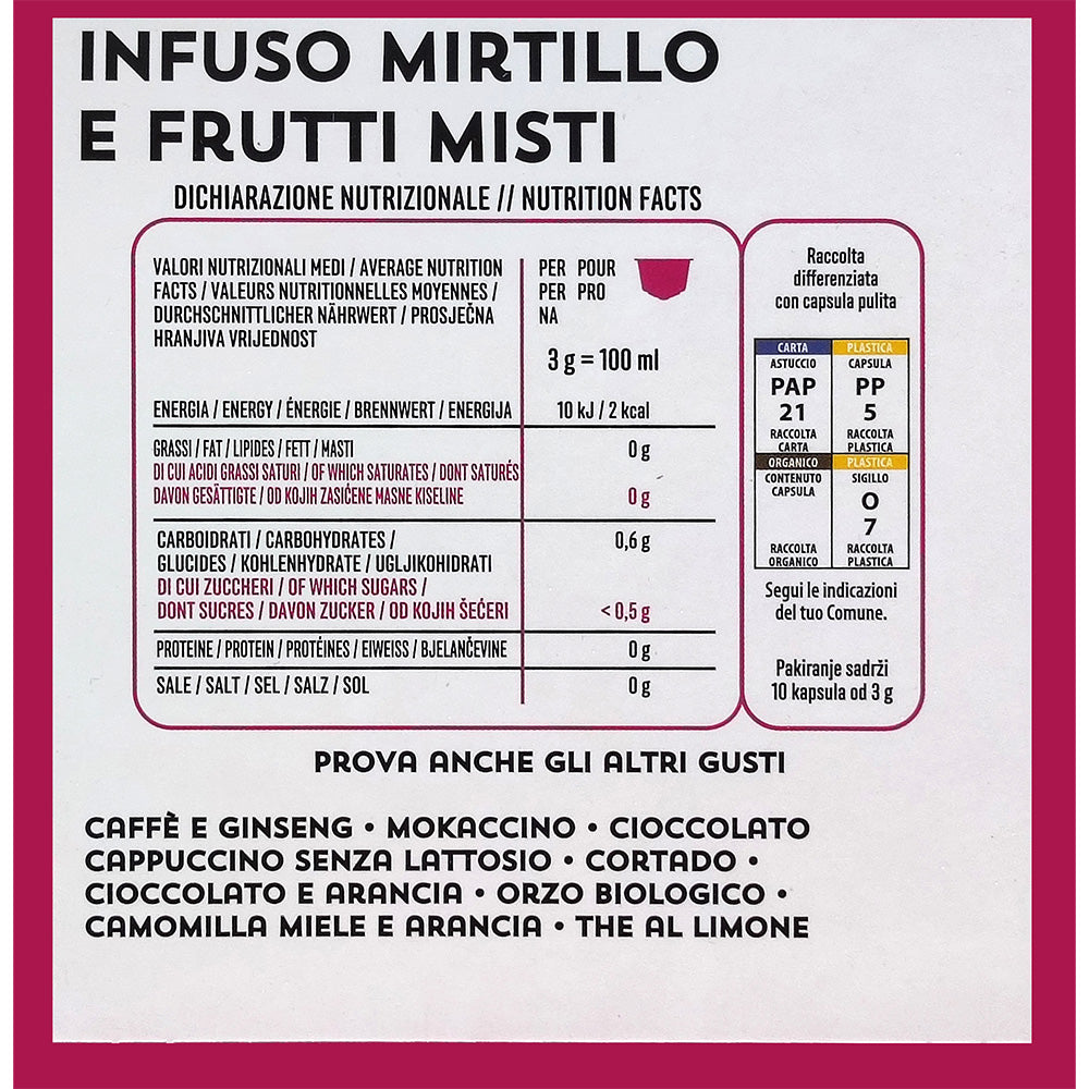 - Gusto: Infuso fruttato con mirtillo e mix di frutti per un sapore fresco e aromatico