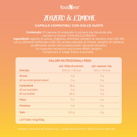 10 Capsule per Tisana Zenzero e Limone FoodNess - Compatibili Nescafé Dolce Gusto