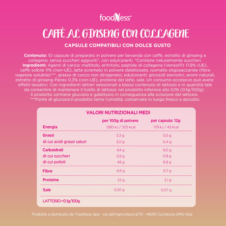 10 Capsule FoodNess Caffè al Ginseng con Collagene - Compatibili Dolce Gusto