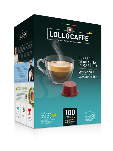 100 Capsule Lollo Caffè Compatibili Lavazza BLUE PassioneOltremare Miscela NERA