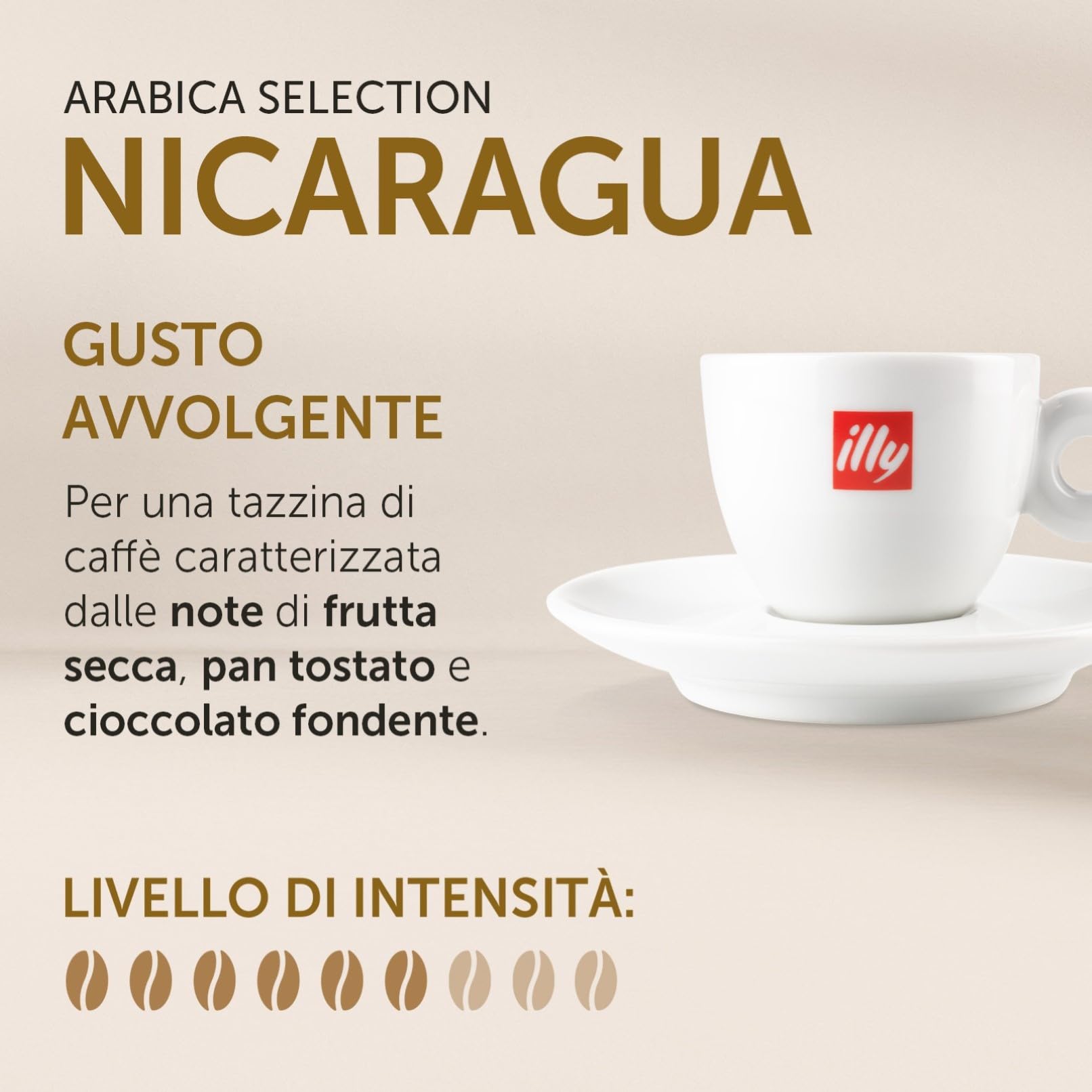 Scopri il gusto unico di Illy Iperespresso Nicaragua: 18 capsule monoarabica, compatibili con il sistema Iperespresso. Una miscela selezionata che regala un espresso dal profilo aromatico elegante e raffinato, con un corpo morbido e note floreali e fruttate.