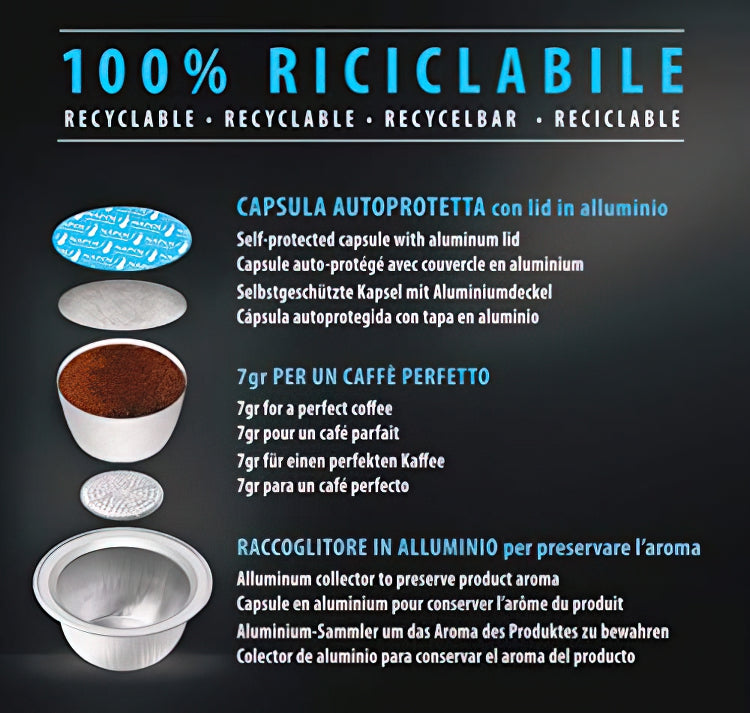 - Capsula autoprotetta in alluminio – sigilla perfettamente l’aroma
