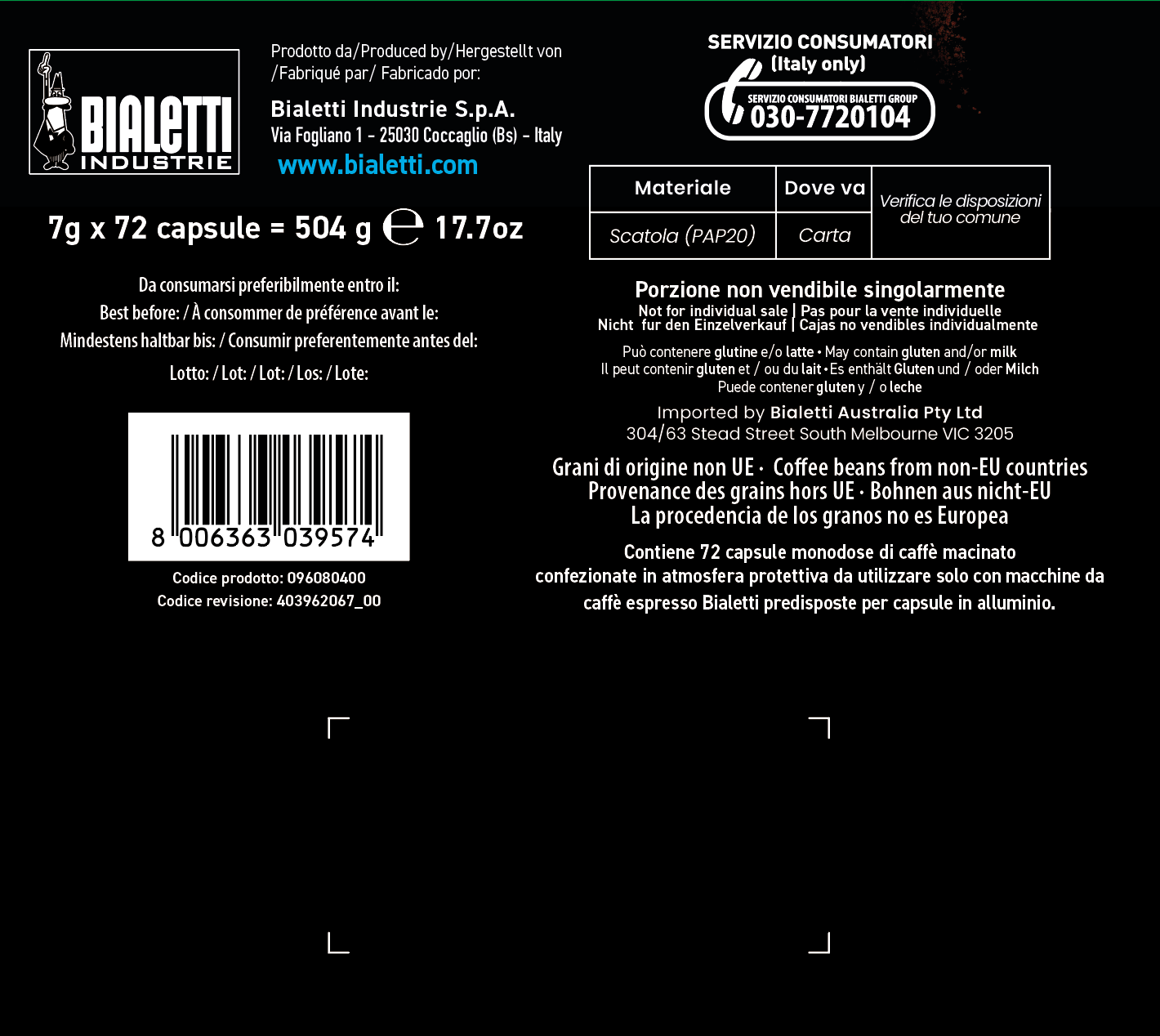 - Compatibilità: solo con macchine Bialetti adatte a capsule in alluminio