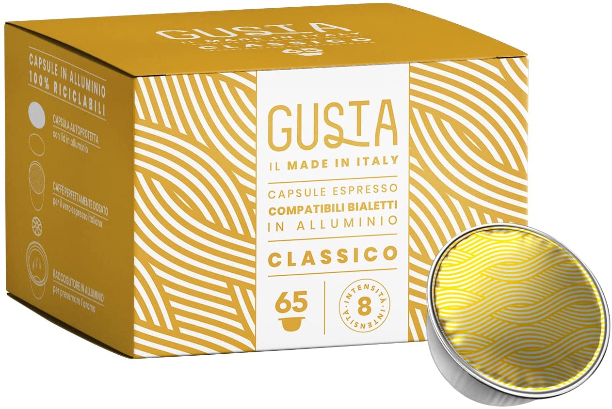 Assapora l’autentico piacere del caffè classico con le 65 capsule GUSTA Classico, perfettamente compatibili con le macchine Bialetti. Ogni capsula offre un aroma equilibrato e intenso, ideale per una pausa quotidiana ricca di gusto e cremosità.