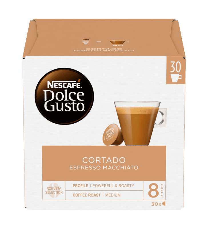 Non perdere l'occasione di gustare le 30 capsule Nescafé Dolce Gusto Cortado, perfette per chi cerca un caffè intenso e cremoso con un tocco di latte. Ordina ora e trasforma ogni pausa in un momento di autentico piacere!
