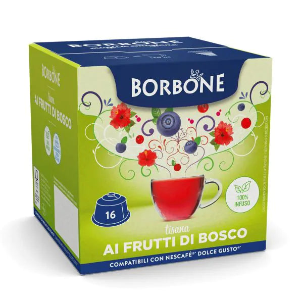 Tisana FRUTTI DI BOSCO - Preparato per infuso ai frutti misti Borbone in capsule compatibili Nescafé Dolce Gusto.