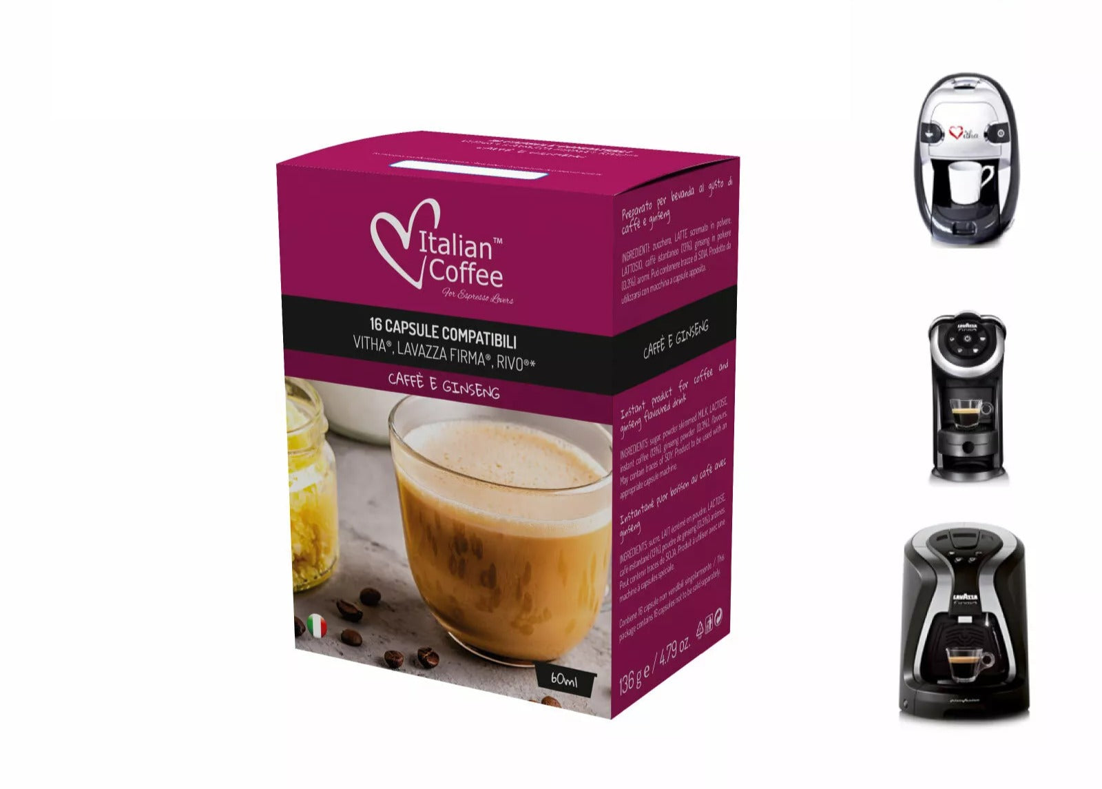 16 Capsule Caffè e Ginseng Italian Coffee compatibili per il sistema Lavazza® Firma®.
