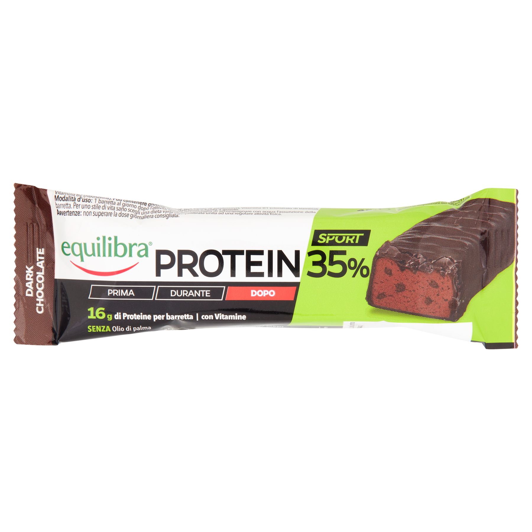 Protein 35% Dark Chocolate di Equilibra è la barretta perfetta per chi desidera uno snack gustoso e nutriente. Contiene 35% di proteine (16g per barretta) da latte e soia, ideali per sostenere la massa muscolare. Arricchita con Vitamine C, B1, B2, B6 e acido pantotenico per favorire il metabolismo energetico e ridurre la stanchezza. Senza olio di palma, è uno snack sano e bilanciato al delizioso sapore di cioccolato fondente. Perfetta per il post-allenamento!