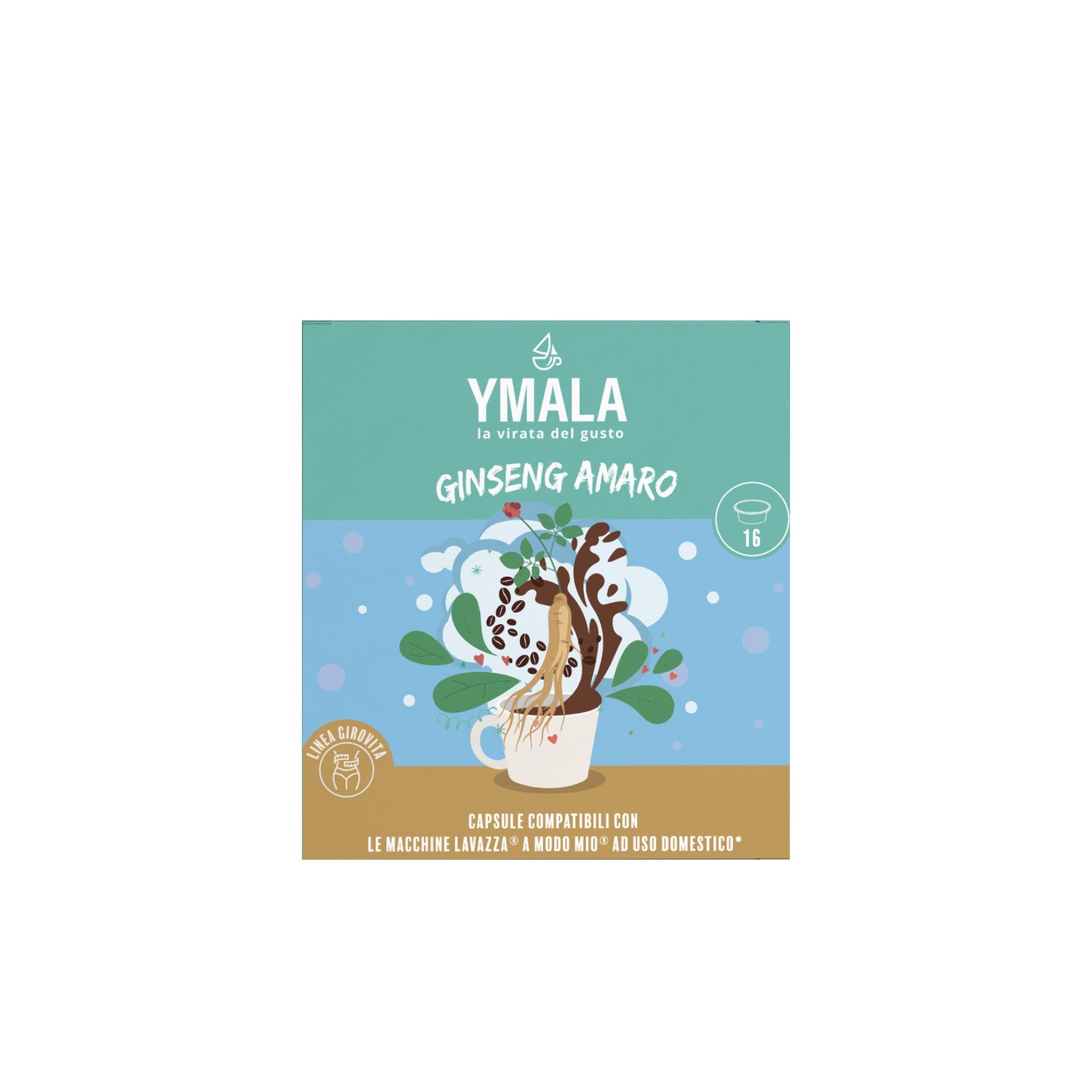 Scopri l'intensità del ginseng amaro Ymala, compatibile con macchine A Modo Mio®. Il suo gusto deciso, arricchito da delicate note di caramello, ti regalerà un momento di benessere e felicità in ogni tazza.