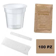 Ideale per bar, caffetterie e eventi, garantisce un servizio sostenibile senza rinunciare alla qualità. I bicchieri sono resistenti e compostabili, le palette sono pratiche e naturali, mentre lo zucchero di canna offre un dolcificante genuino e aromatico. Un’opzione completa per chi cerca accessori eco-friendly certificati, perfetti per un consumo responsabile e attento all’ambiente.