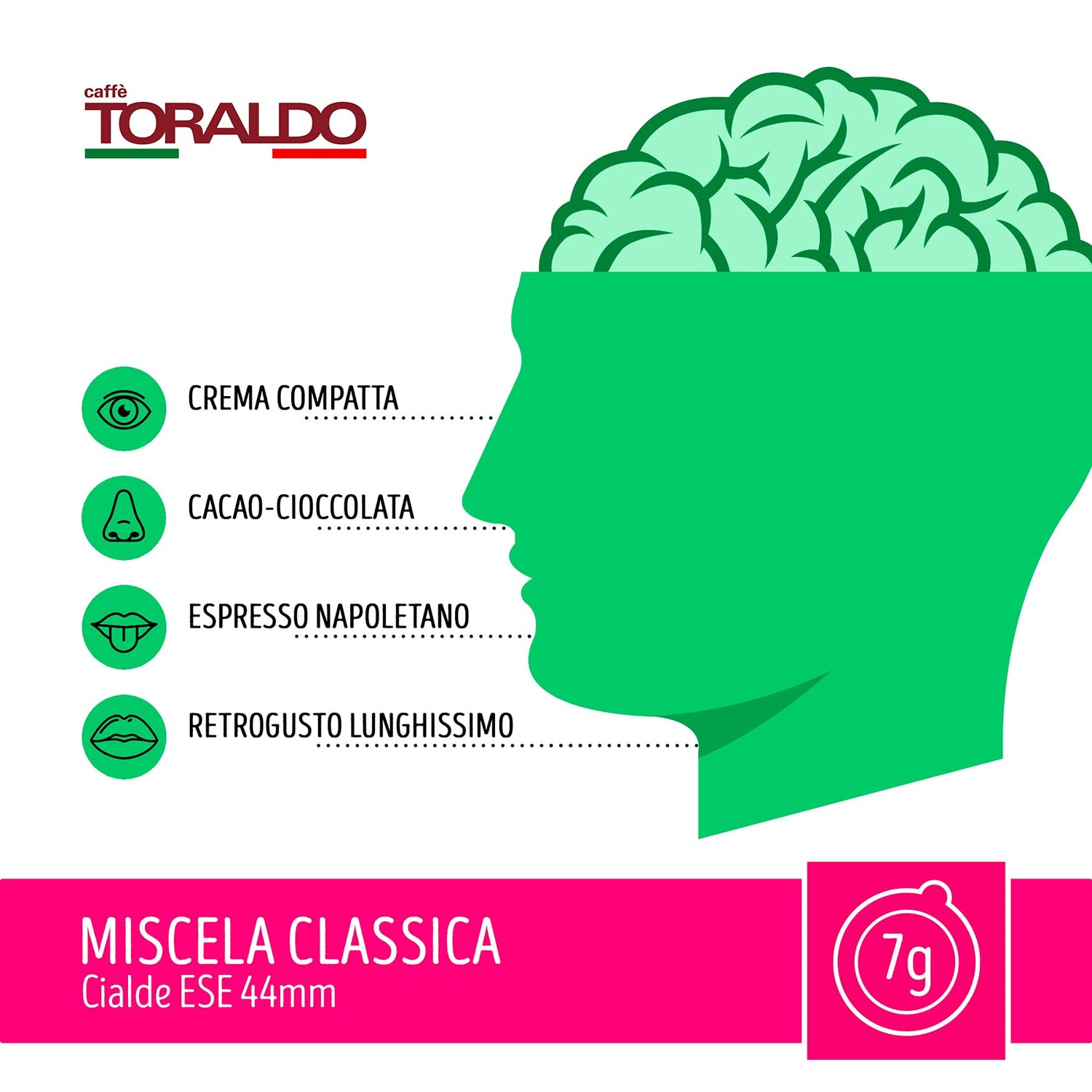 Le 150 Cialde Ese 44mm Toraldo - Miscela Classica MAXI offrono un’esperienza di caffè autentica e di alta qualità. Miscela dall’aroma vellutato. Corpo deciso, cremosità persistente e retrogusto ciocco lattato, con caratteristiche pensate per esaltare il sapore e la cremosità in ogni tazza: