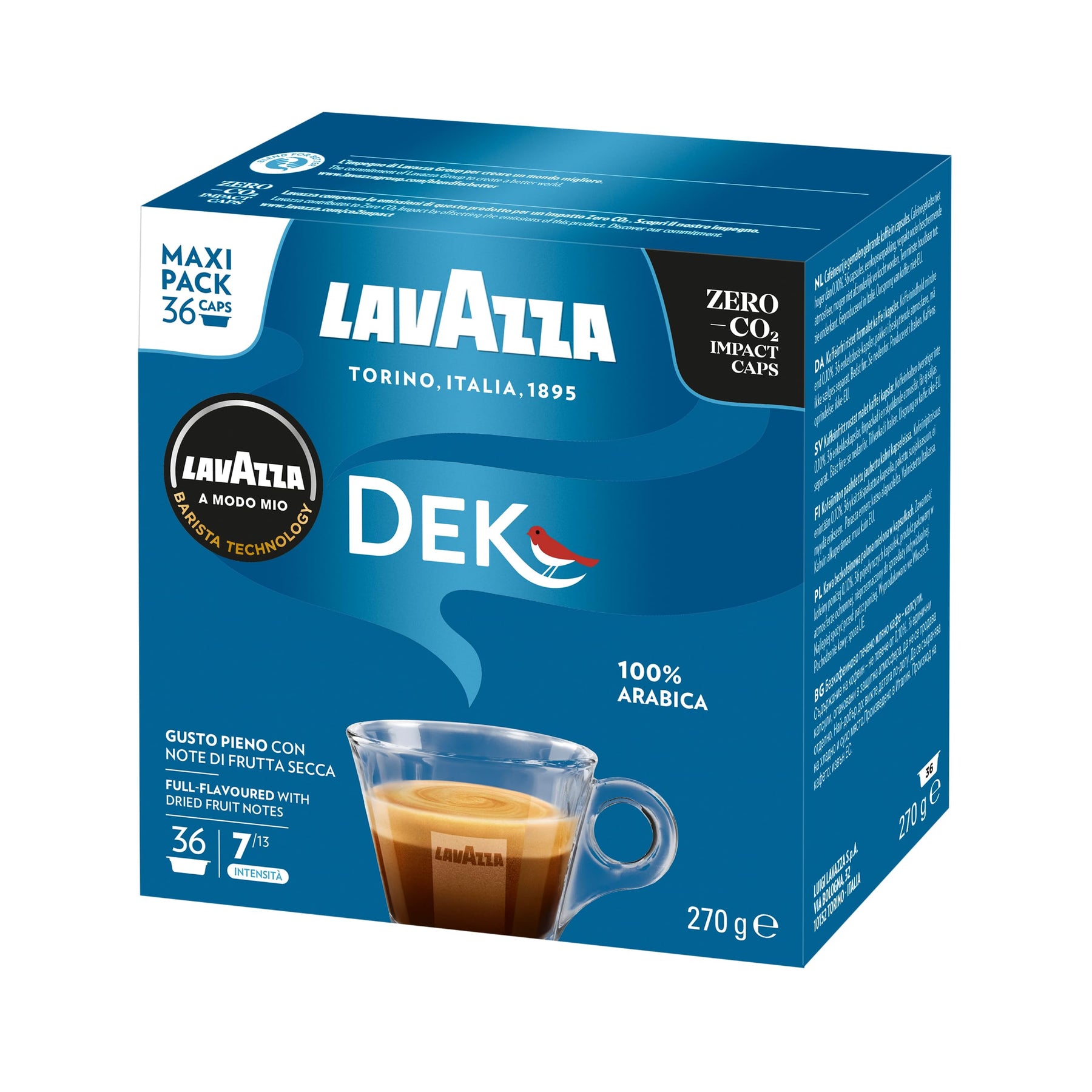 Goditi un espresso dal gusto morbido con le 36 Capsule Lavazza A Modo Mio Decaffeinato Dek, perfette per chi desidera un caffè privo di caffeina senza rinunciare al sapore e alla cremosità. Questa miscela equilibrata combina delicatezza e corpo per una pausa caffè piacevole in ogni momento della giornata.